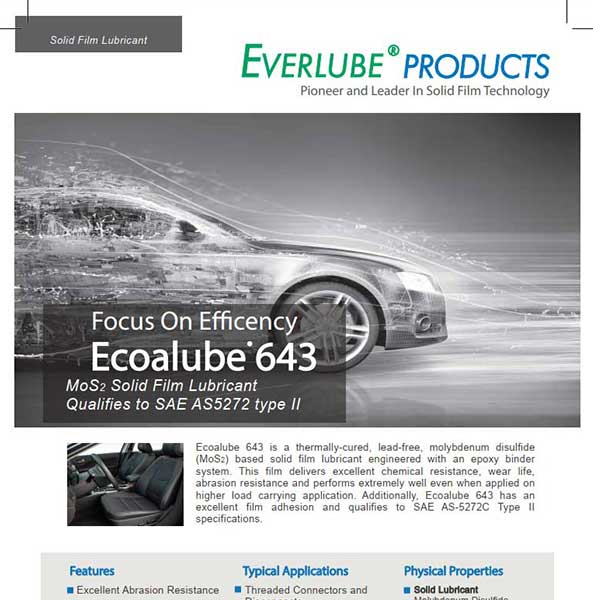 Ecoalube 643 is a thermally-cured, lead-free, molybdenum disulfide based solid film lubricant